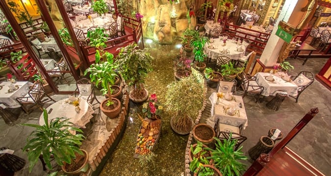 Saran Rom’s already extravagant, carved mahogany fittings have been layered with even more flamboyance. You walk through a bloom-laden lobby, plastered with Blue Elephant …