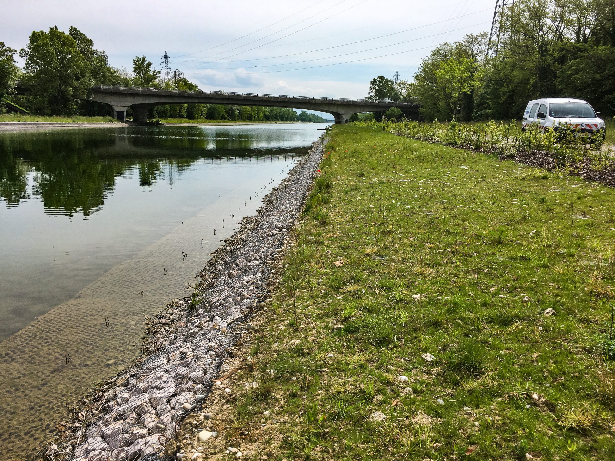 As part of a project near Toulouse (France), Maccaferri provided and installed Gabions - Reno Mattress for the construction of a retention basin.
