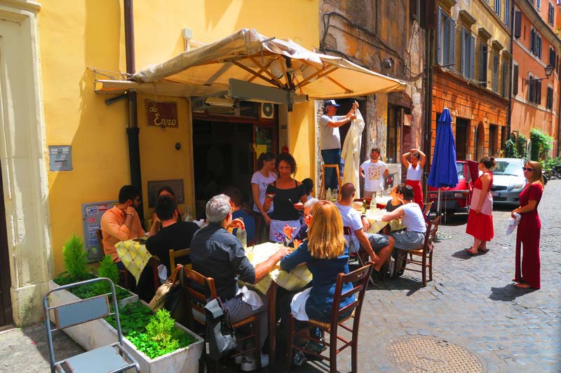 Da Enzo. Via dei Vascellari 29, Rome. Our Rating Neighborhood Trastevere Hours Mon–Sat 12:30–3pm and 7:30–11pm Transportation. Bus: 23, 44, 280. Tram: 8. Phone 06-5812260 …